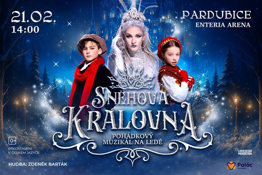 21. února 2026 od 14 hodin zažijte jedinečné a velkolepé představení, kde se propojují krasobruslení, akrobacie, divadlo a muzikál. Na scéně ožije legendární pohádka Hanse Christiana Andersena v podání kreativního týmu Luckystar Production. Společně s odvážnou Gerdou se vydáte na fascinující cestu za jejím bratrem Kajem, jehož srdce zasáhl střep prokletého zrcadla. Ani kouzlo Sněhové královny nemůže odolat síle lásky a přátelství – protože právě ty překonají všechny překážky.