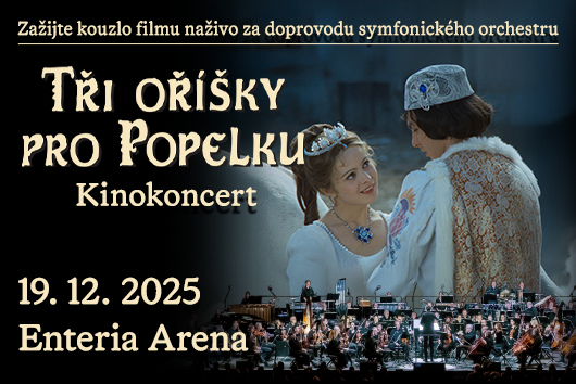 Do Pardubic 19. prosince 2025 přichází jedinečný Tři oříšky pro Popelku Kinokoncert – oblíbená pohádka pro všechny generace ve vysokém rozlišení na velké LED obrazovce, doprovázená naživo velkým 70členným orchestrem.